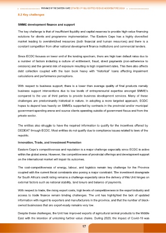 access to trade finance remain binding challenges. The unit has highlighted the lack of updated