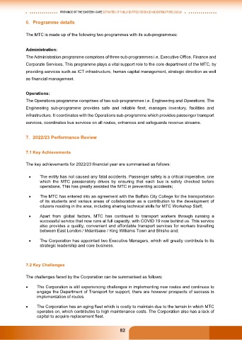 infrastructure. It coordinates with the Operations sub-programme which provides passenger transport